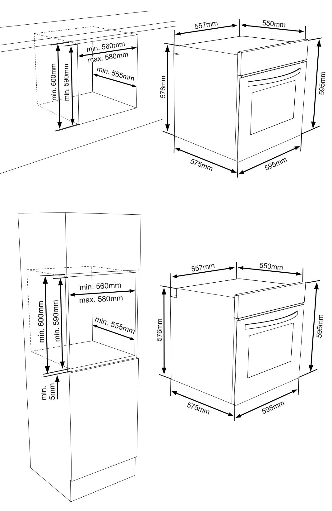 Размер ниши для встраивания в столешницу (В*Ш*Г), см 59x56x55,5