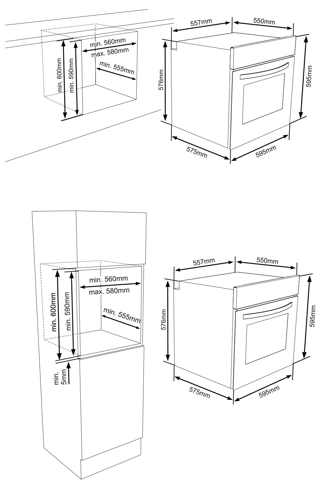 Размер ниши для встраивания в столешницу (В*Ш*Г), см 59x56x55,5