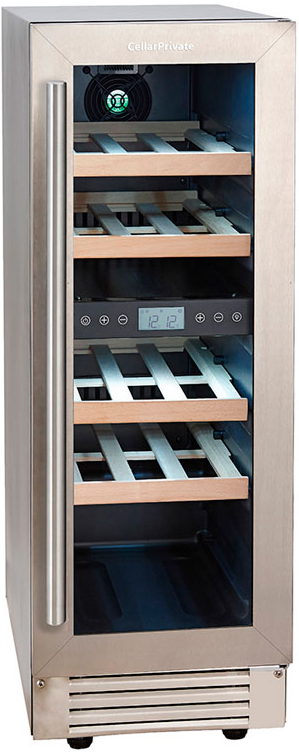 Винный шкаф двухзонный Cellar Private CP017-2T предназначен для хранения небольшой винной коллекции или для подготовки вин к дегустации. В нем две зоны с широким диапазоном рабочих температур в каждой, динамическая вентиляция, отключаемая светодиодная подсветка. До 17 бутылок можно хранить на его четырех деревянных полках и нижнем уровне.