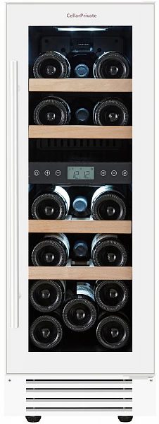 Винный шкаф двухзонный Cellar Private CP017-2TCP017-2TW предназначен для хранения небольшой винной коллекции или для подготовки вин к дегустации. В нем две зоны с широким диапазоном рабочих температур в каждой, динамическая вентиляция, отключаемая светодиодная подсветка. До 17 бутылок можно хранить на его четырех деревянных полках и нижнем уровне.