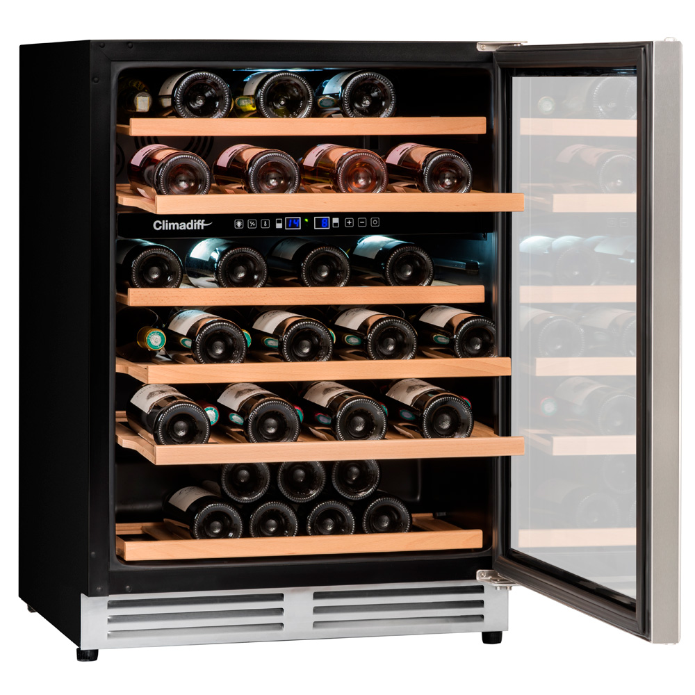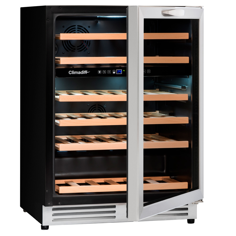 Винный шкаф двухзонный Climadiff CBU51D1X предназначен для хранения при оптимальных условиях бутилированного вина различных сортов в барах, ресторанах, специализированных магазинах, подсобных складских помещениях, а также в домашних условиях.