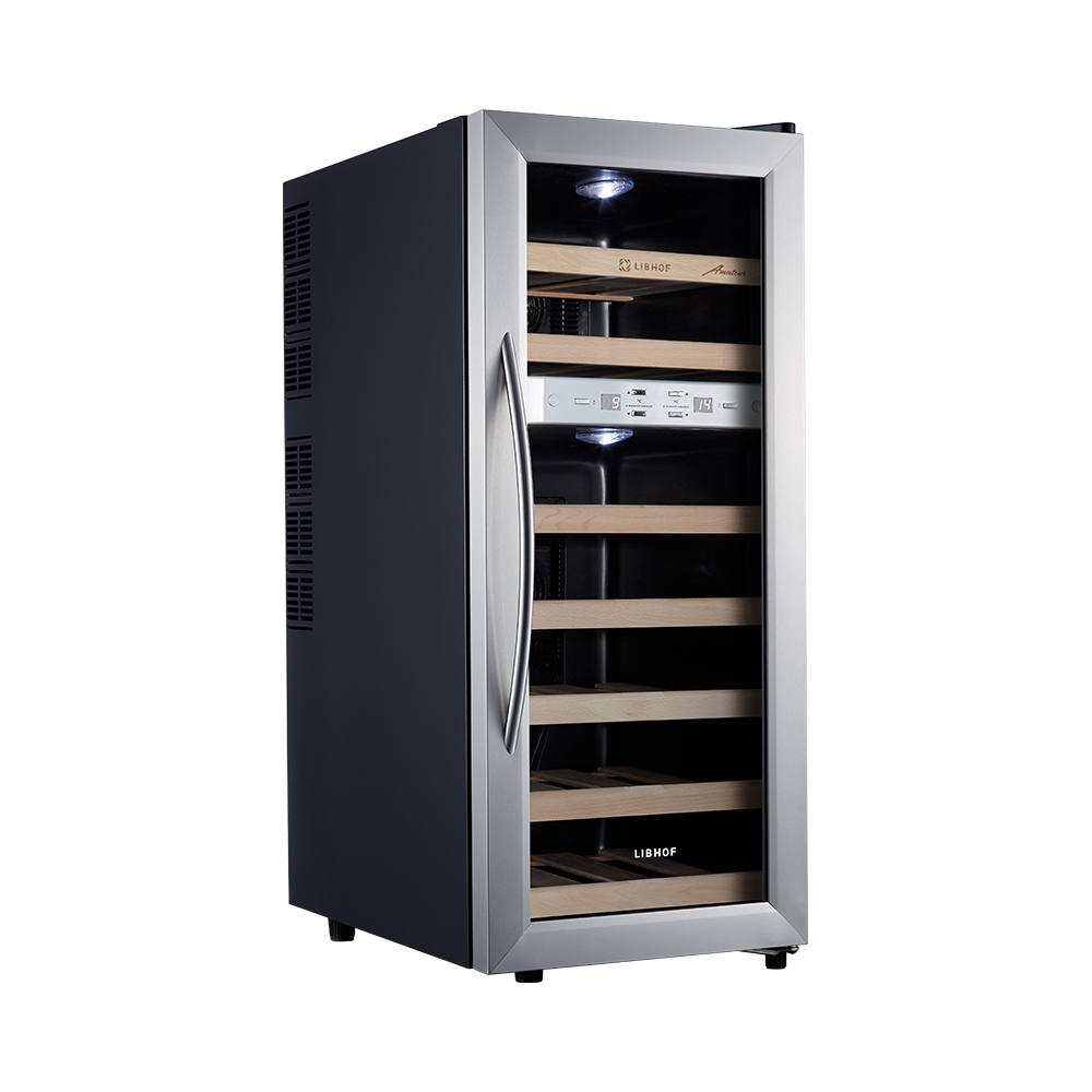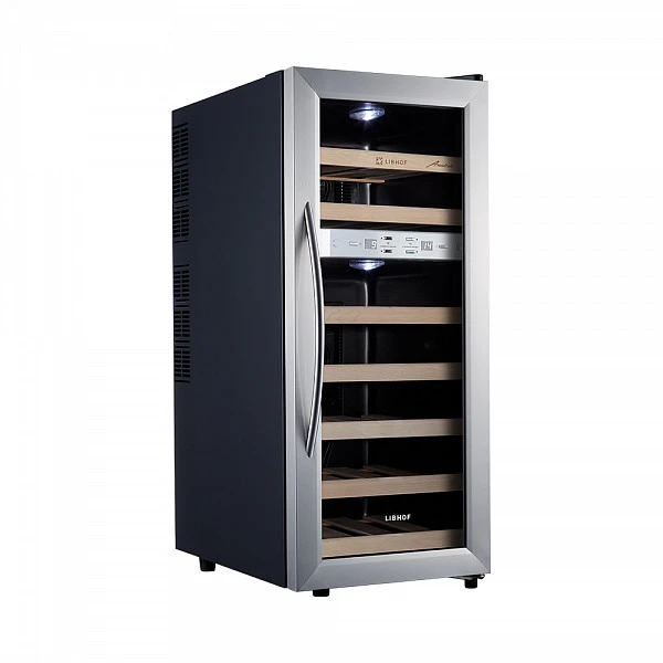 Винный шкаф двухзонный Libhof AFD-21 Silver предназначен для хранения вина в оптимальных условиях (температура, влажность, защита от УФ излучения, вибраций и т. д.).