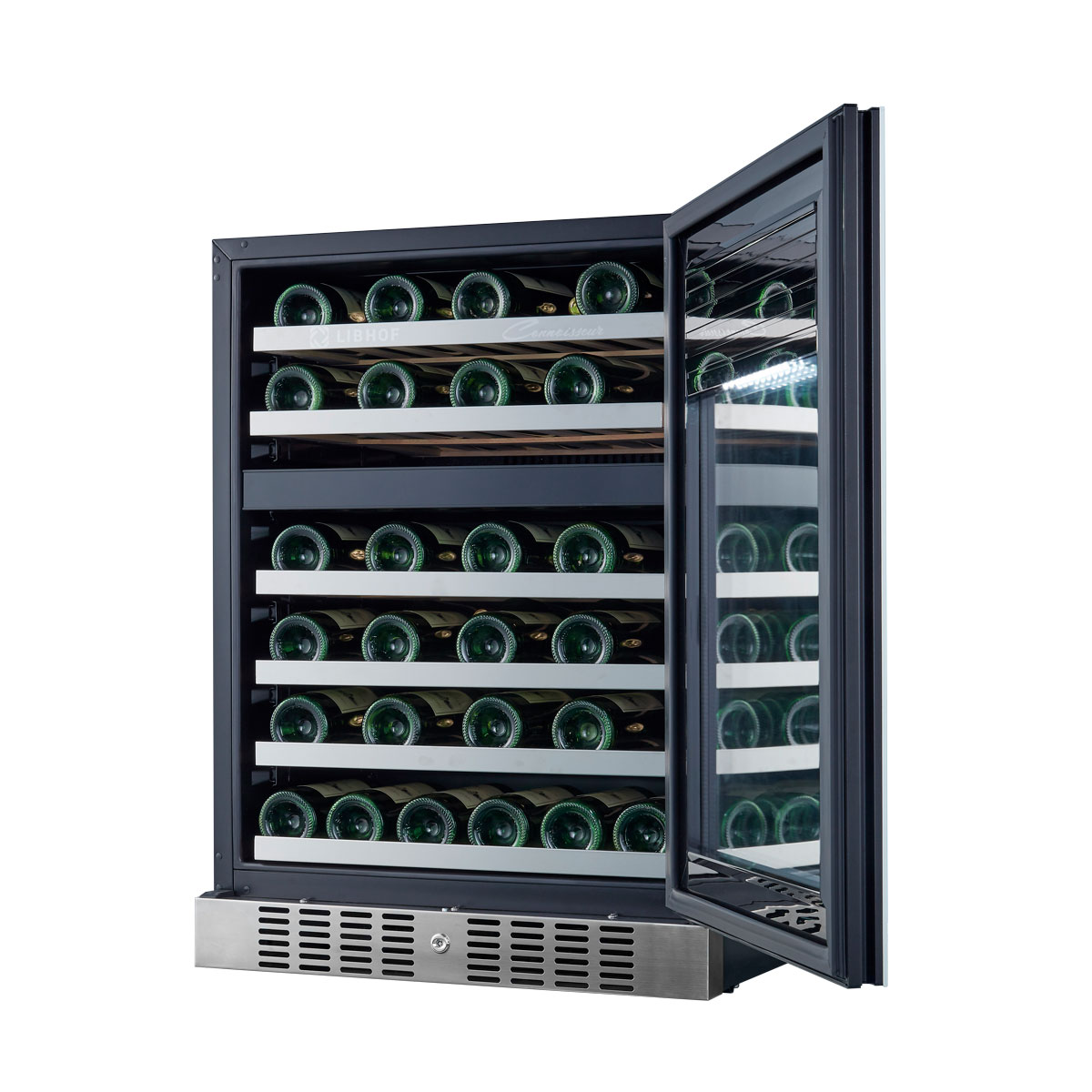 Модель предназначена для встраивания и вмещает до 46 бутылок объемом 750 мл.
