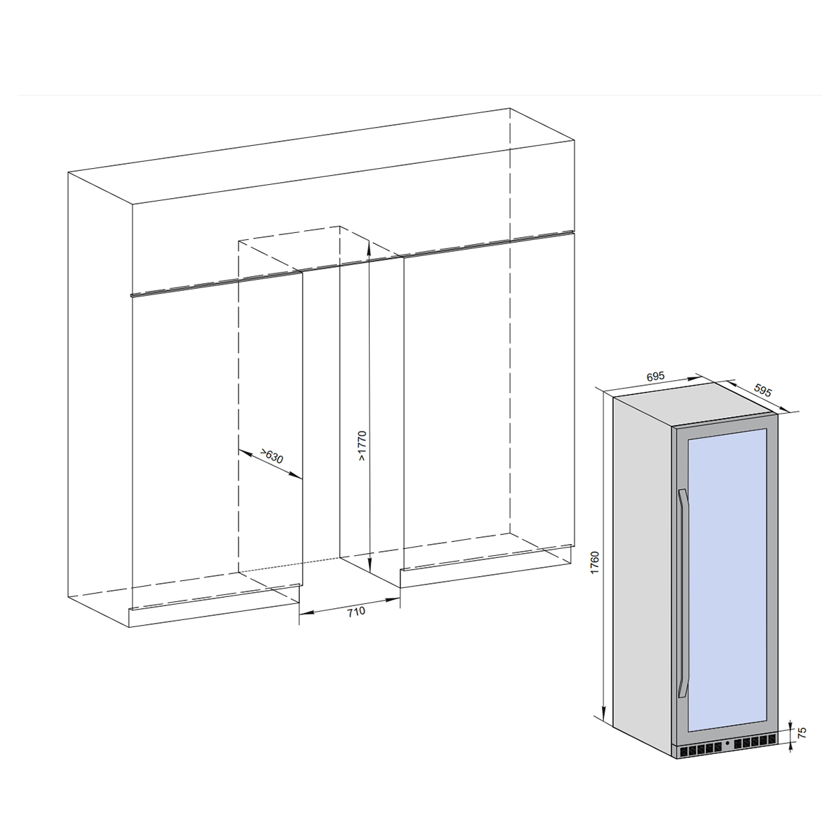 А перенавешиваемая дверь станет дополнительным преимуществом, так как Вы сможете разместить винный шкаф там, где пожелаете.