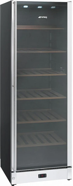 Светодиодный дисплей в винных шкафах от компании Smeg позволяет точно контролировать температуру и влажность, от которых зависит сохранность коллекционных вин. Дисплей располагается на панели управления на дверце устройства либо за дверцей на верхней части корпуса. Светодиодная подсветка отличается экономичностью и долговечностью, она абсолютно безопасна для хранящихся в винном шкафу бутылок. В зависимости от модели на дисплее может отображаться только фактическое значение температуры либо расширенная информация о температуре в каждой из зон, времени, дате, функциях меню