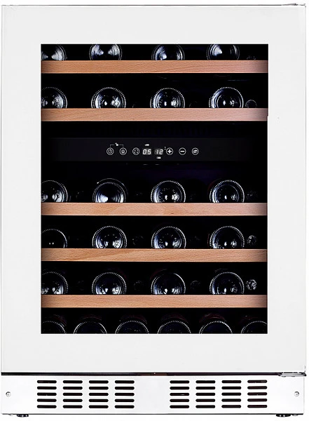 Две температурные зоны физически разделены посередине винного шкафа, причем холодная зона находится вверху, а более теплая — внизу. Мы рекомендуем хранить белое вино и игристое при температуре 8°C, а красное вино — при 14°C.