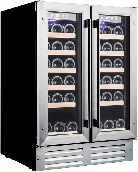 Винный холодильник для встройки на кухне под столешницу с двумя температурными камерами
