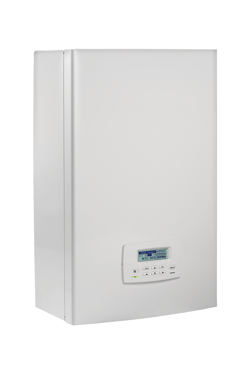 Управление котлом основано на современном уникальном погодозависимом алгоритме, настройка может происходить по температуре теплоносителя, комнатной и уличной температурам.