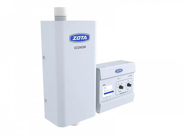 Электроотопительный котел Zota Econom 12 предназначен для обогрева жилых и производственных помещений, а также нагрева воды для технических целей. Котел должен быть подключен к автономной системе отопления и наполнен теплоносителем.