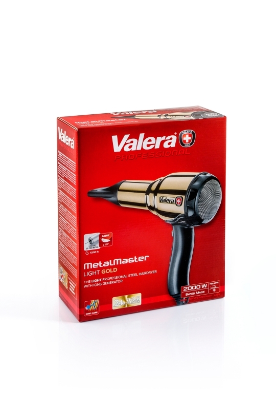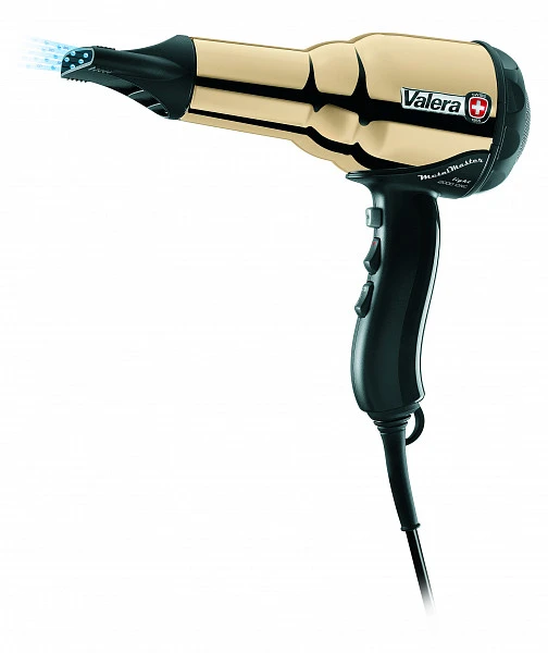 Фен Valera Professional Swiss Metal Master Light (584.01/I D gold) используется в парикмахерских, барбершопах и салонах красоты для сушки волос и создания укладок.