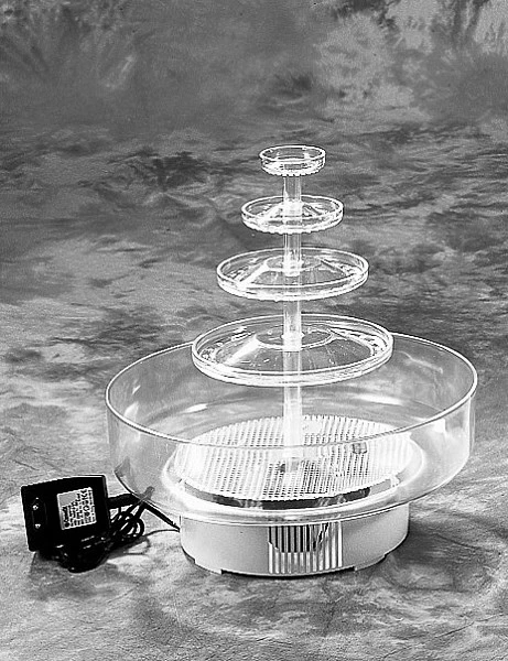 Портативный фонтан оснащен маломощным электрическим насосом, который подает непрерывный поток воды или других неплотных жидкостей.