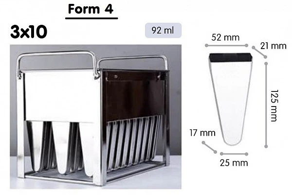 Форма для мороженого эскимо Koreco SSI 40 Eskimo form 4 предназначена для приготовления 30 эскимо объемом 92 мл в эскимогенераторе SSI 40 ESKIMO.
