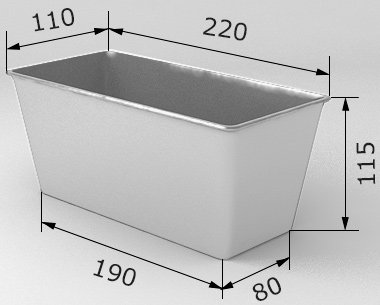 Низ:190х80 мм, верх: 220х110 мм, высота:115 мм