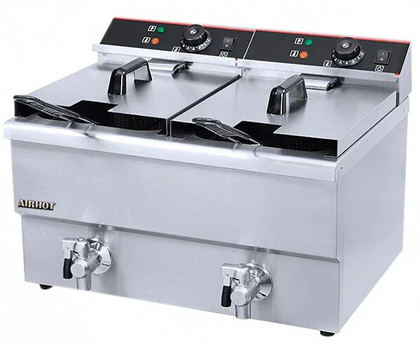 Фритюрница AIRHOT EF12+12 отлично вписывается в формат любого предприятия общественного питания, где требуется приготовление обжаренных во фритюре блюд. Обеспечивает получение золотистой корочки у чебуреков, пирожков, картофеля фри.
