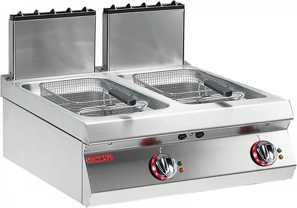 Фритюрница газовая настольная, 2 "V"-образные ванны, объем масла 7+7 л, модуль тепловой линии Gamma (модель 2018 года).