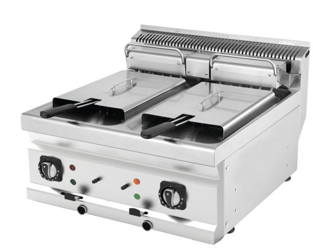 Фритюрница электрическая настольная, 2 ванны, объем масла 8+8 л, модуль кухонной линии 600.