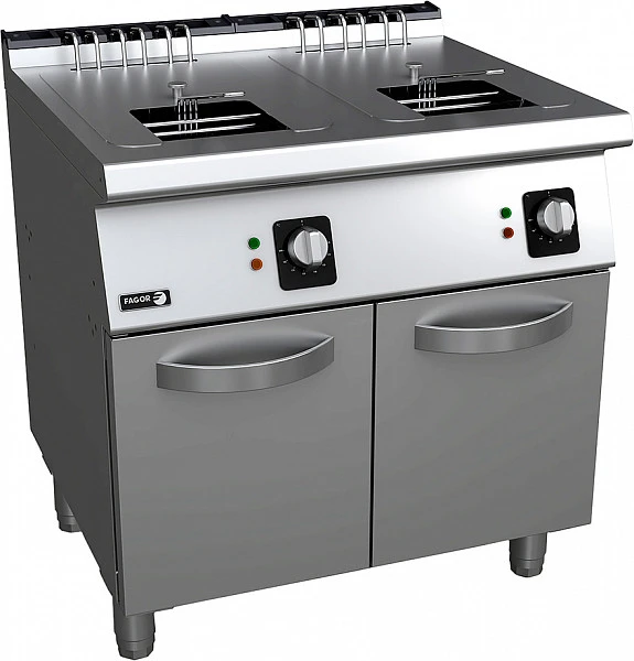 Фритюрница под давлением Fagor F-E7215 19071455 предназначена для жарки изделий из мяса, птицы, рыбы или овощей в большом количестве масла в столовых, кафе, ресторанах.