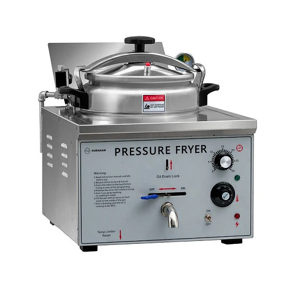 Фритюрница под давлением Hurakan HKN-EPF16M предназначена для обжаривания продуктов, таких как картофель, мясо, рыба, овощи и фрукты в кляре, в разогретом до определенной температуры растительном или животном масле. Продукт, приготовленный во фритюрнице под давлением более нежный, сочный и имеет более насыщенный вкус.