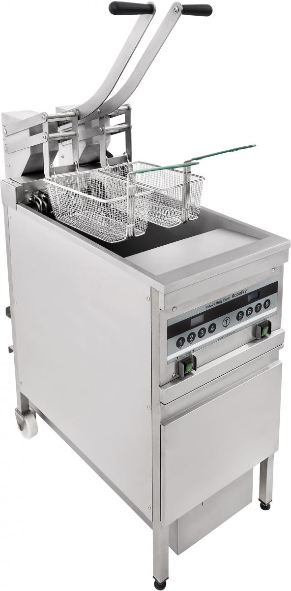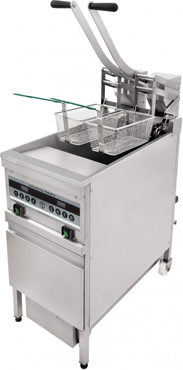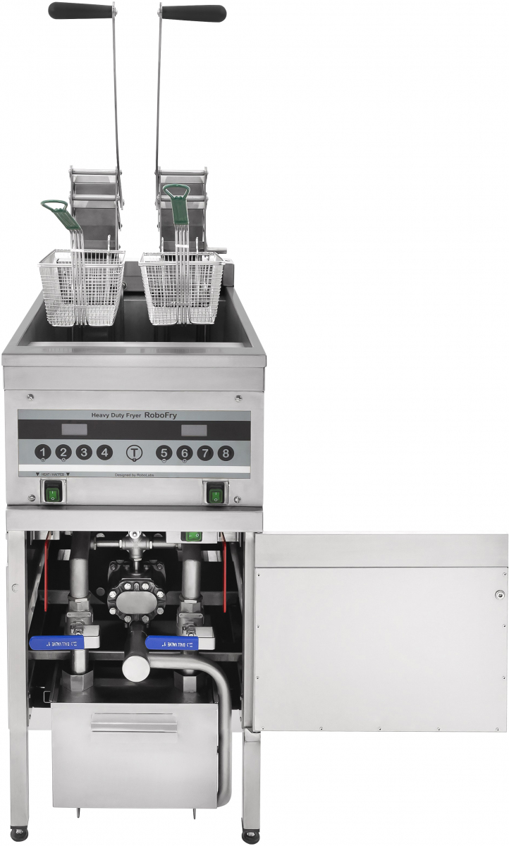 Фритюрница RoboLabs RoboFry ARF электрическая с системой фильтрации масла на закрытом стенде с одной ванной объёмом по 25 л используется на предприятиях общественного питания и торговли для приготовления широкого спектра блюд в большом объеме масла или жира. Одна ванна объёмом 25 литров в сочетании с мощными ТЭНами – позволяют качественно готовить большие объемы замороженной продукции.