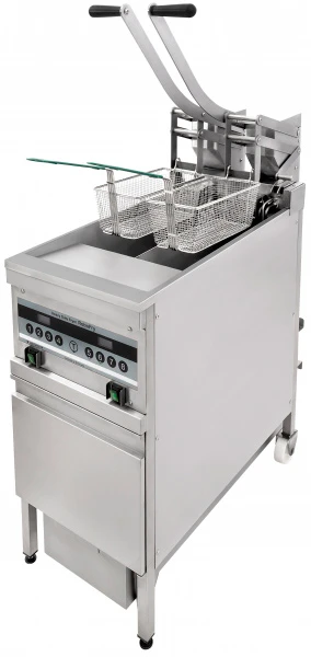 Механизм поднятия корзин - гарантирует соблюдение установленных режимов приготовления, освобождает персонал от постоянного контроля за фритюрницей, так как лифты самостоятельно поднимают корзину из ванны через установленное время.