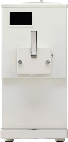 Модель оснащена гравитационной системой подачи продукта: специальная подающая труба позволяет смеси и воздуху проходить в морозильный цилиндр, что происходит благодаря закону гравитации. Гравитационная система подачи позволяет использовать любую смесь, в том числе содержащую мелкие кусочки фруктов.