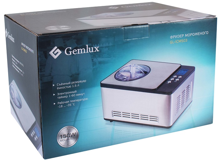 Фризер Gemlux GL-ICM503 предназначен для приготовления твердого мороженого, замороженного йогурта, шербета и других холодных десертов.