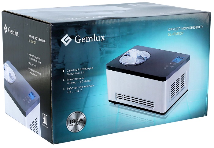 Фризер Gemlux GL-ICM507 предназначен для приготовления твердого мороженого, замороженного йогурта, шербета и других холодных десертов.