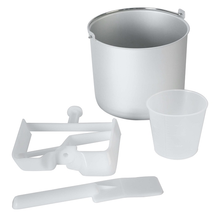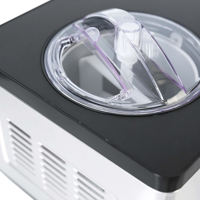 В комплект поставки входит съемный резервуар из алюминия с антипригарным покрытием и съемная мешалка, которые позволяют за один рабочий цикл длительностью до 60 мин приготовить 2 л мороженого.