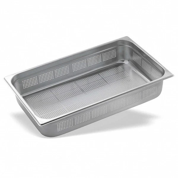 Гастроемкость перфорированная Pujadas 2/3-20, нержавейка используется на предприятиях общественного питания и торговли для приготовления блюд на пару, бланширования, процеживания и сушки. Для изготовления емкостей используют нержавеющую сталь, которая не поддается коррозии и не окисляется в процессе использования.