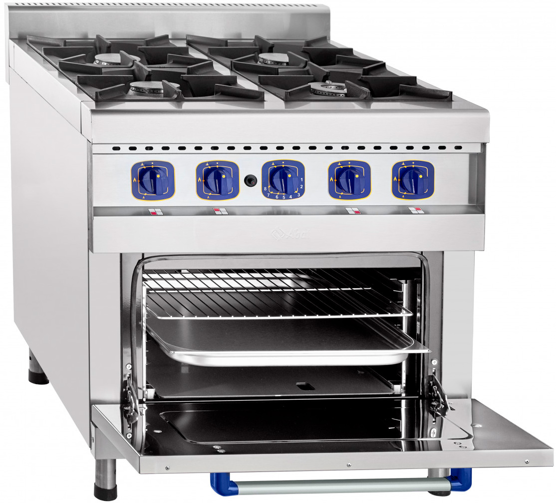 Плита газовая Abat ПГК-49ЖШ четырехгорелочная с духовкой (газовой) для приготовления первых, вторых и третьих блюд в наплитной посуде, а также для жарки полуфабрикатов из мяса, рыбы, овощей и выпечке мелкоштучных кулинарных изделий.