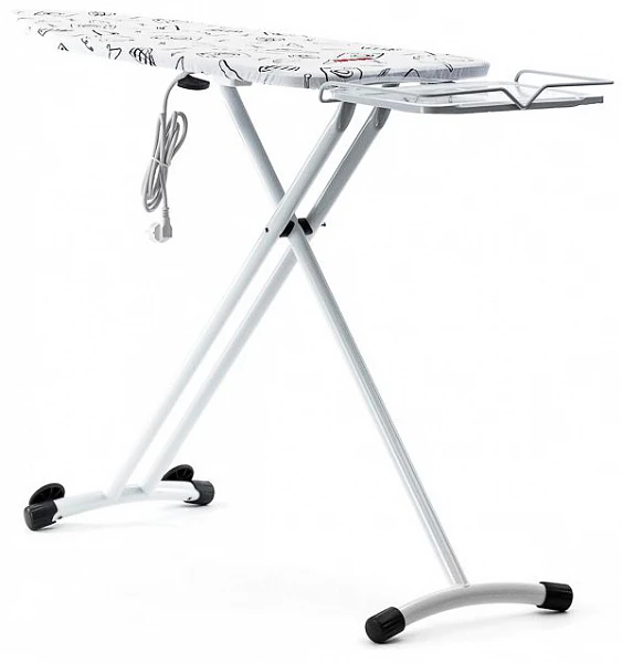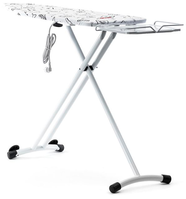 MIE Grazia-С white оборудована встроенной электрической розеткой для подключения утюга или парогенератора, а также удлинителем 1,8 м. Эта полезная функция широко востребована среди домохозяек, так как дает при глажке свободу действий, даже при использовании техники с небольшой длиной сетевого шнура.