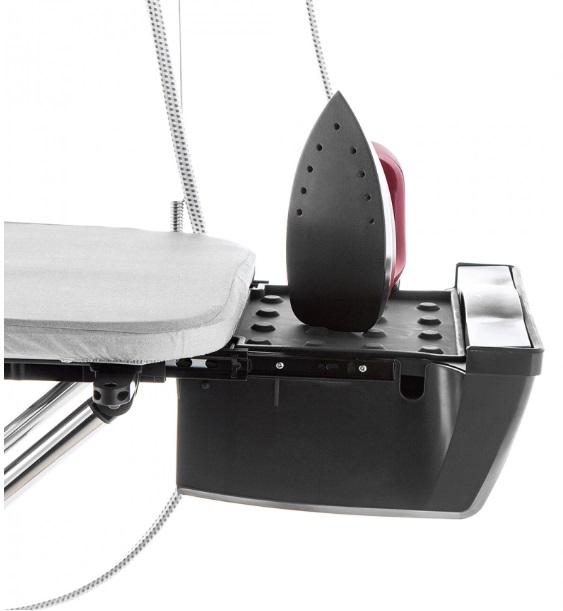 На гладильной доске предусмотрен специальный отсек для хранения утюга, куда его можно помещать даже с разогретой подошвой. Это обезопасит вас, ваших питомцев и детей от ожогов.