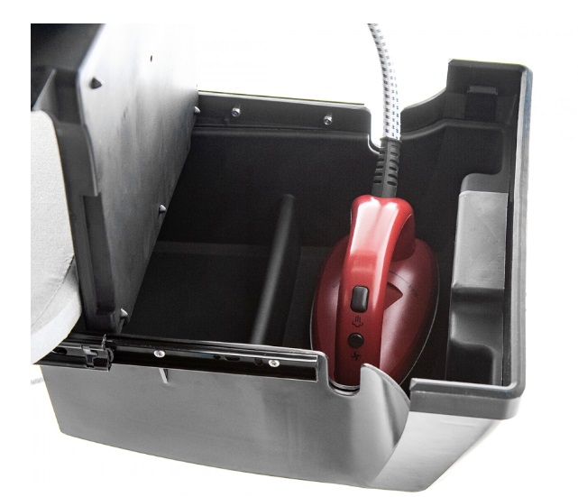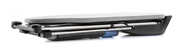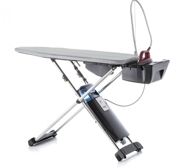 • Парогенератор закреплен на ножках, под гладильной доской. Он не занимает много места, имеет обтекаемую форму и гармонично вписывается в общий дизайн гладильной системы.