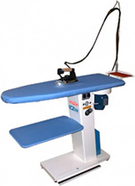 Стол снабжен вакуумным отсосом для удаления влаги и поддувом для натяжения белья, а также системой защиты рабочей поверхности от перегрева.
