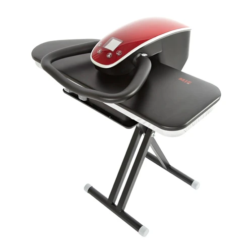 - Конструкция пресса разработана так, чтобы вы могли одной рукой опускать платформу и руководить разглаживанием. Для удобной раскладки белья и одежды верхняя часть откидывается под большим углом, чтобы горячая поверхность оказывалась подальше от рук.