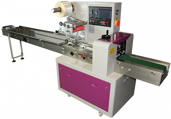 Горизонтальный упаковочный автомат Магикон 250AGD предназначен для упаковки твердой продукции поштучно или в коробках и коррексах в пакет «flow-pack».