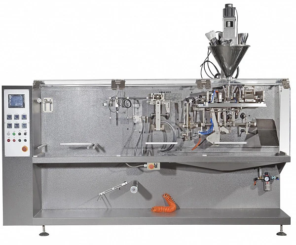 Это позволяет устанавливать на автомат, в зависимости от упаковываемого продукта, один из видов дозатора (мультиголовочный, шнековый, жидкостный, объемный и др.)