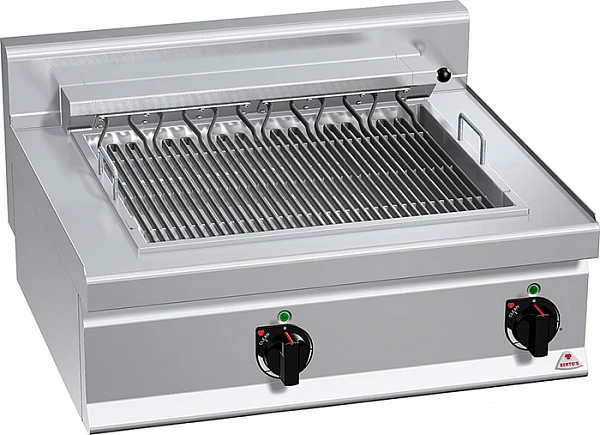 Гриль барбекю Berto's E7CG80B используется на предприятиях общественного питания и торговли для приготовления на гриле овощей, мяса, рыбы, хлеба и других продуктов.