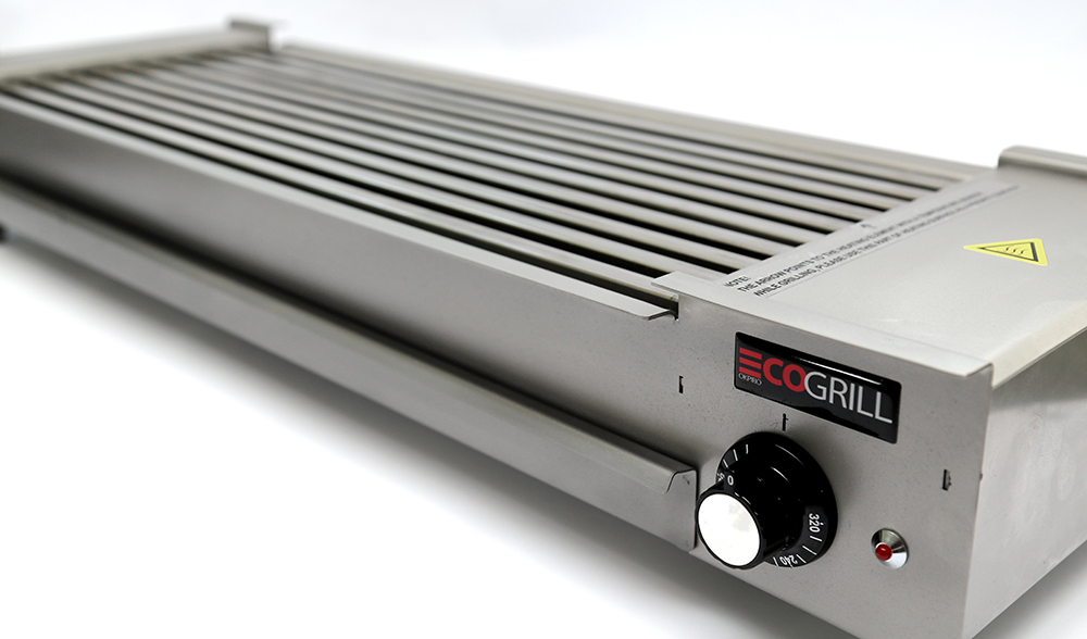 EcoGrill объединяет функциональный дизайн и оригинальную систему нагрева. Нагревательная решетка изготовлена из труб нержавеющей стали, и в каждую из них встроен независимый нагреватель. Данный тип конструкции обеспечивает превосходную энергоэффективность, равномерность температуры на всей поверхности, а также быстрое достижение температуры в диапазоне до 320 °С