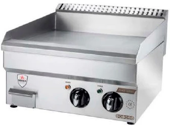 Оснащен открытой жарочной поверхностью с бортами, устойчивыми нескользящими опорами и электромеханической панелью управления.