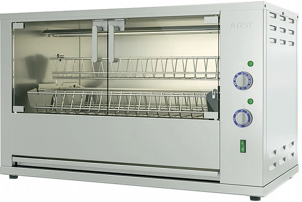 Гриль для кур Atesy Командор-5Э-Т (карусельный) предназначен для жарки тушек кур, цыплят, куриных окорочков, грудок и других продуктов на предприятиях общественного питания.