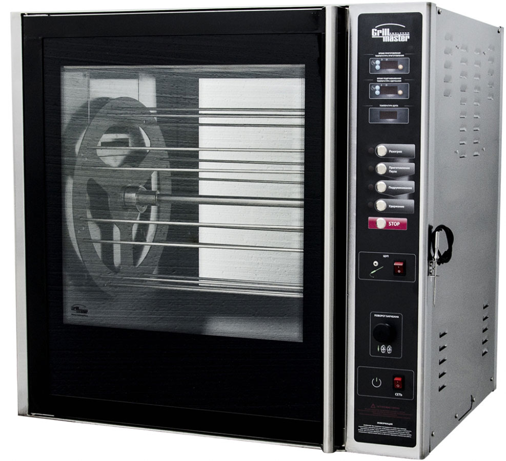 Конвекционный гриль отвечает всем этим требованиям и способен за 55 минут приготовить 40 тушек кур отменного качества благодаря продуманной системы конвекции горячего воздуха в камере и трёхуровневой системы приготовления.