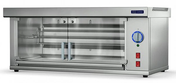 Гриль для кур Kayman ГЭ-1Ш A предназначен для жарки тушек кур, цыплят, куриных окорочков, грудок и других продуктов на предприятиях общественного питания и торговли.