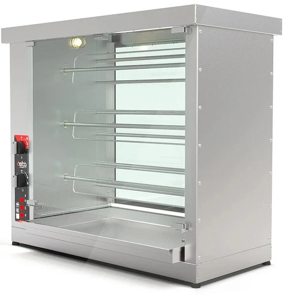 Профессиональный электрический гриль для приготовления кур Osba уже долгое время пользуется заслуженной популярностью среди владельцев супермаркетов, заведений быстрого питания и кафе. У этого гриля масса преимуществ: работать с ним легко, у гриля достаточно высокая производительность, а прозрачная дверца и задняя стенка позволяет наблюдать за процессом. Визуальная составляющая имеет большое значение, ведь вид аппетитной румяной курочки и соблазнительный аромат привлечет гораздо больше клиентов, чем обычная реклама.