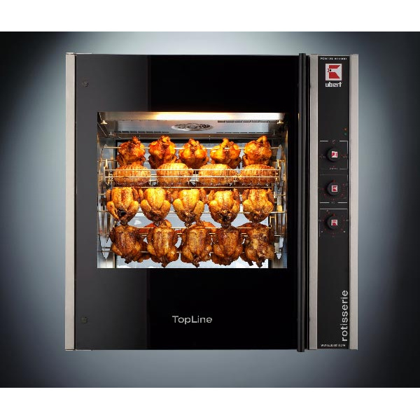 Гриль для кур Ubert RT 403 предназначен для использования в ресторанах быстрого питания, супермаркетах и уличной торговле для жарки цыплят, куриных окорочков, крылышек и грудок.