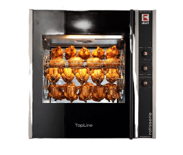 Гриль для кур Ubert RT 412 предназначен для использования в ресторанах быстрого питания, супермаркетах и уличной торговле для жарки цыплят, куриных окорочков, крылышек и грудок.
