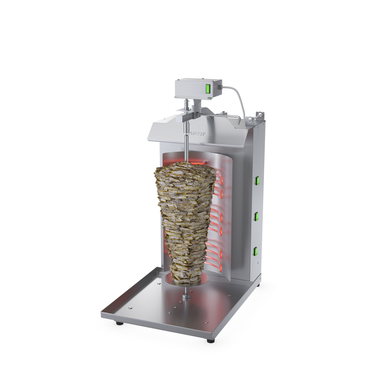 Аппарат для шаурмы Atesy Шаурма 3-Эл-05-Оц предназначен для жарки свиного, бараньего или куриного мяса, предварительно прошедшего процесс маринации, использованного для приготовления шаурмы, на предприятиях общественного питания.