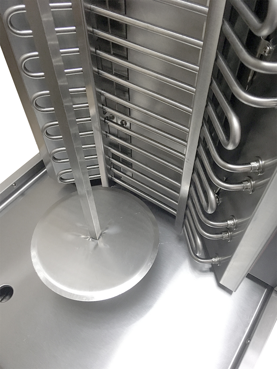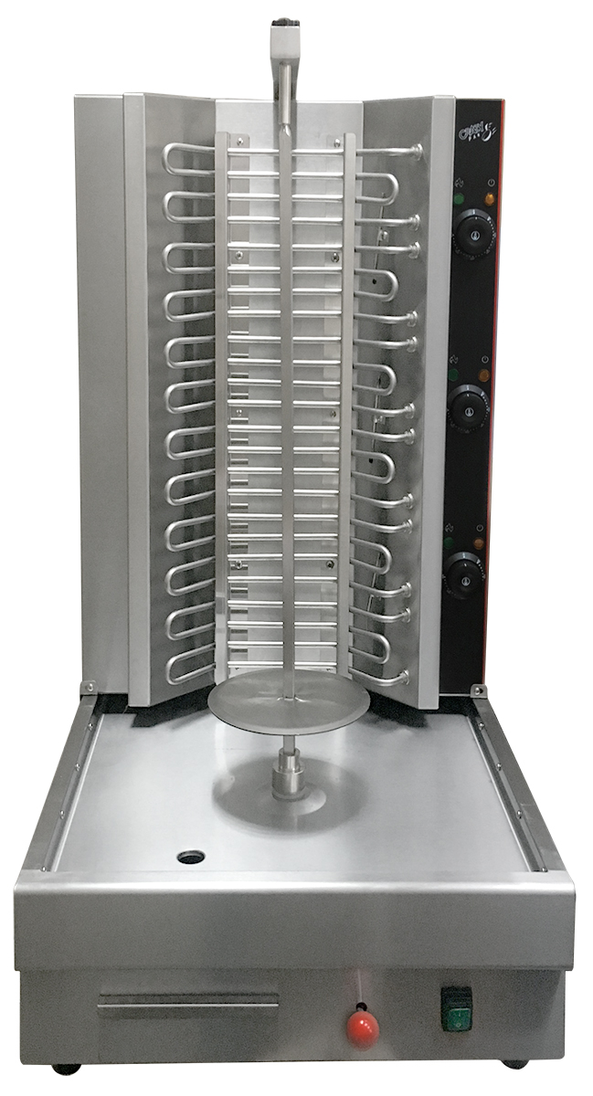Гриль для шаурмы Crazy Pan CP-SGA30 используется на предприятиях общественного питания и торговли для запекания специально подготовленного свиного, говяжьего, бараньего или куриного мяса на вертеле.