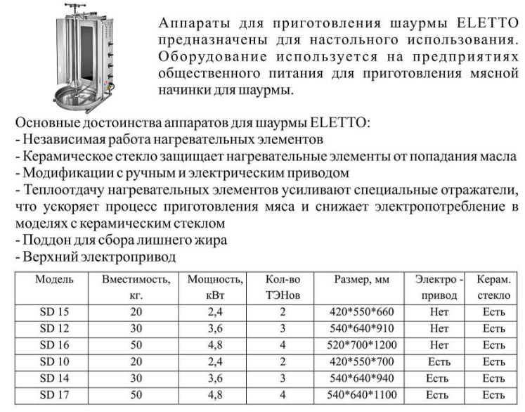 Гриль для шаурмы Eletto SD 14 используется на предприятиях общественного питания для приготовления мясной начинки для шаурмы.