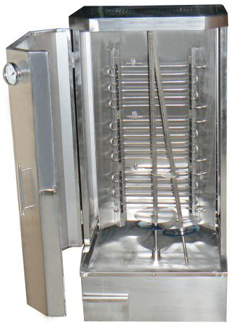 Гриль для шаурмы Foodatlas CY-70A используется на предприятиях общественного питания и торговли для запекания специально подготовленного свиного, говяжьего, бараньего или куриного мяса на вертеле.